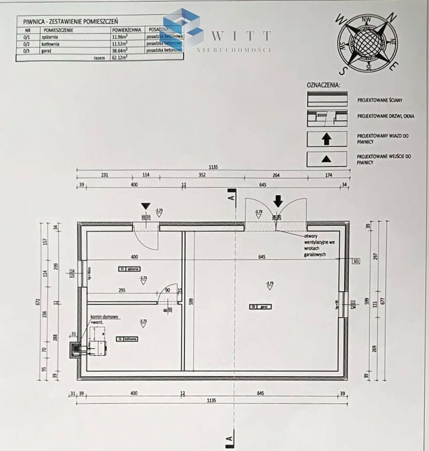 • Powierzchnia użytkowa piwnicy: 62,12 m²